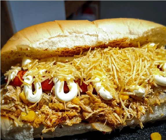 Pão, Salsicha, queijo, frango, milho e batata palha